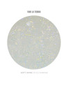Polygelul Soft Shine 01 – Ice Diamond dezvăluie un efect semitransparent cu sclipici fin și reflexii multicolore aurii și bleu – ca o dantelă de lumină înghețată, elegantă și hipnotizantă.