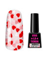 • Top coat transparent cu inimioare roșii și roz pentru un efect romantic și jucăuș